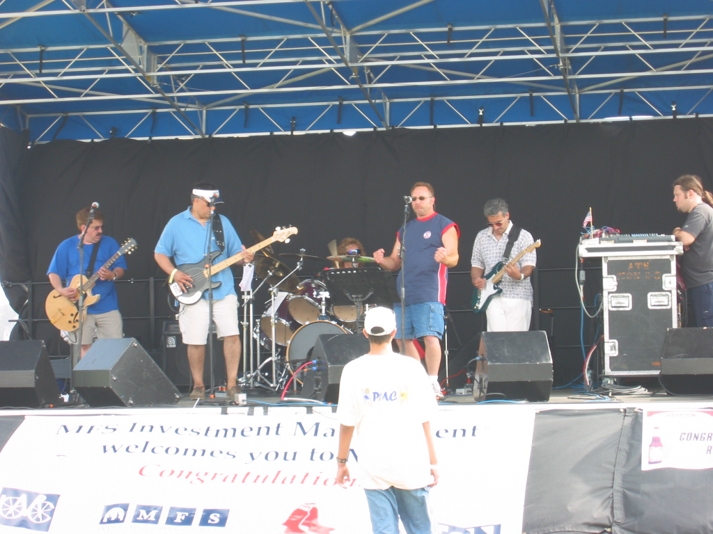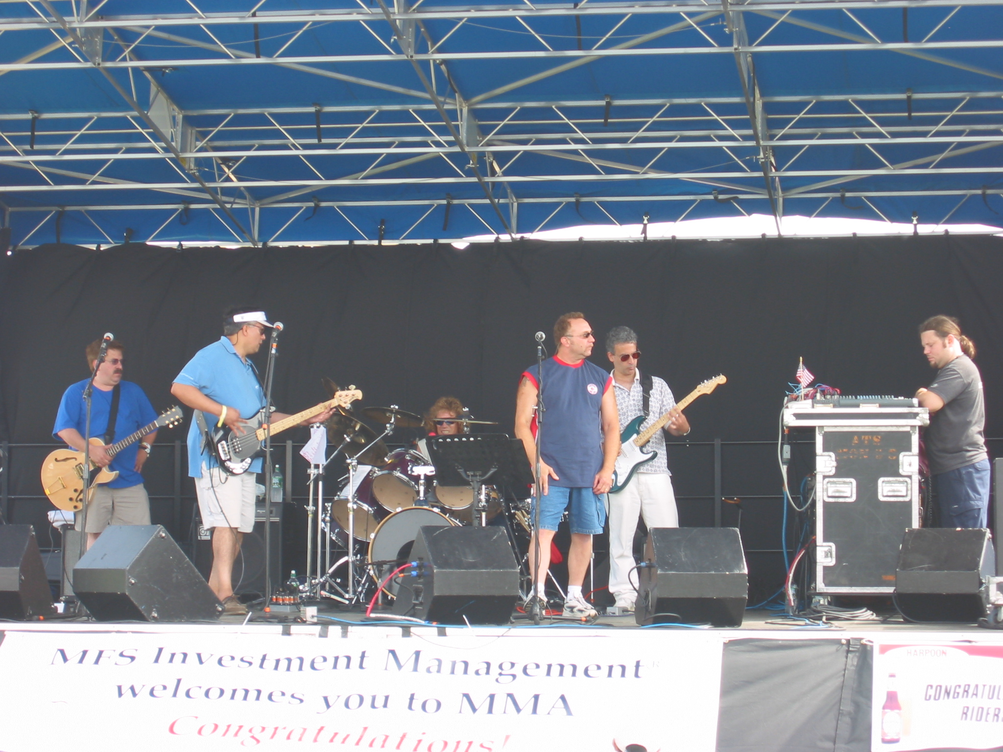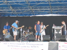 The sun was shining in Bourne and a great afternoon was in store for us. Talk about being lucky. It rained and was overcast most of the ride and somehow we ended up with perfect weather for the time at the MMA. You gotta love that. I immediately made my appointment for a massage, took a shower, grabbed a burger from cousin Nancy, another family volunteer, and a beer and proceeded to the quad to enjoy the day. The second band playing that day was Mid Life Crisis, Nancy's cousin Kenny Appel's band.