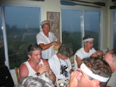 I've talked alot about all the fun we have riding and partying all weekend long. This would not be possible if it weren't for the fantastic volunteer staff working the event. This year Nancy and the kids were part of that staff. It meant more than I can express to see them out there working and participating in the PMC. The volunteers make riding easy and enjoyable. We don't have to worry about anything but pedaling. They make sure we're fed, give us massages, bandage us up when we crash, fix our bikes if there's a problem, get our luggage from place to place, transport our bikes, lug the trash, you name it. They are an amazing crew and I couldn't thank them enough.