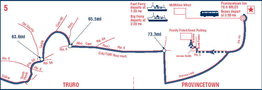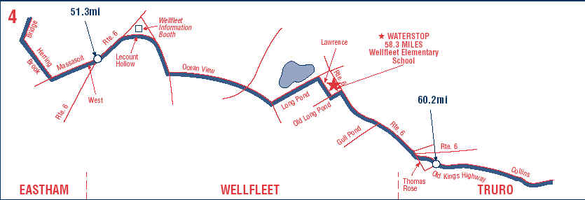 The third stage of the day took us into Wellfleet. Contrary to popular belief, the Cape is not flat. We made the third stage fine, albeit a bit slower than the other two due to the terrain and the fact that I was getting tired so the group slowed the pace a bit for me. We hit the third water stop, filled up as usual and it was off to Provincetown. We had 19 miles left to go to reach our destination. Good thing we saved enough energy for this. I don't know if the last 19 are tougher than the rest but they sure seem it after covering nearly 170 miles in two days. The route took us through Truro on back roads that are, in my opinion, what define Cape Cod. The scenery is just incredible. We end up on route 6 for about 5 miles before entering Provincetown. That "Welcome to Provincetown" sign is always a welcome sight. At this point I'm usually so tired I can barely talk as it takes every ounce of energy to turn the cranks. Thanks to our lead man Wayne he pulled the paceline the entire final 19 miles. This truly helped. At one point I looked behind me and there was another rider we didn't know. She had jumped onto our paceline when we got to route 6 and was just hanging on and riding. She was too tired to talk much either but rode well enough to keep up with the group.