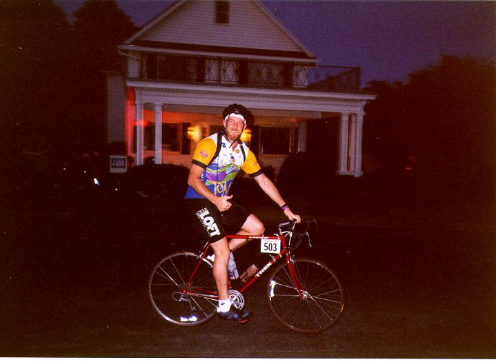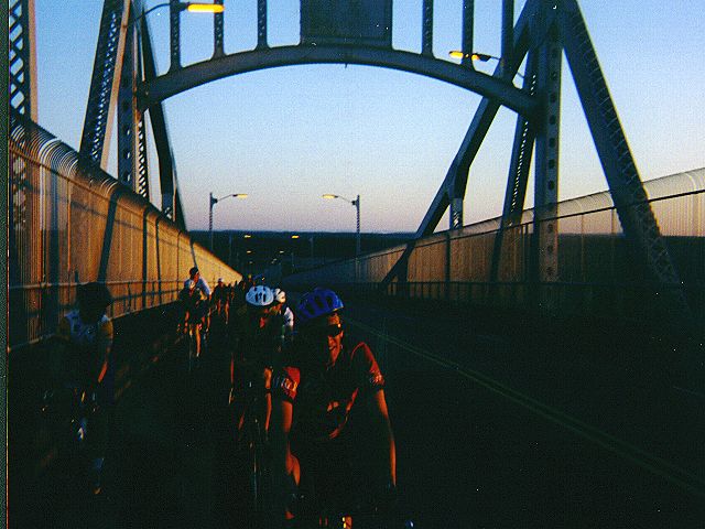 Bill riding over the Bourne Bridge on Day 2, 1998 PMC